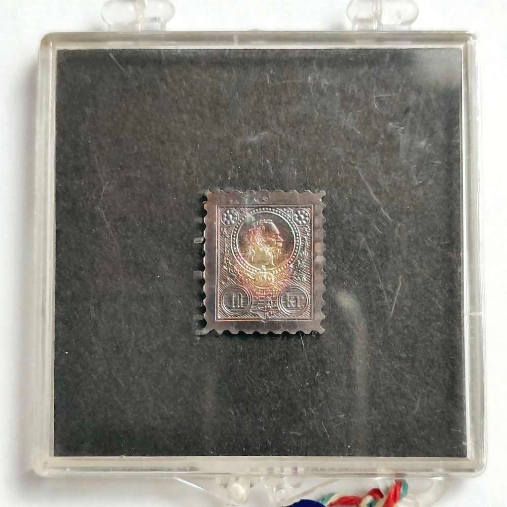 A Proof érem előlapján a 10 Krajcáros bélyeg rajza látható. Az érem felső részén a repülő madár fémjel található, amivel az 1966 és 1999 között Magyarországon gyártott, kisméretű 925 ‰ tisztaságú ezüst tárgyakat jelölték.